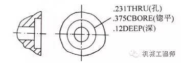 ①视图明确反映为圆形时,不注直径代号DIA(diameter)或D,如图1;只有一个非圆视图时,尺寸数字后加注直径代号DIA或D,如图2。