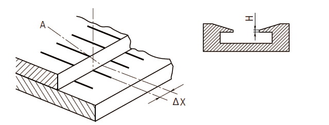 There is a step height difference between the vernier ruler and the scale surface of the main ruler, which is easy to cause reading error. As shown in the figure below, if the cursor scale line is viewed from an oblique direction, the results in the figure will be generated Δ Error shown in X. In order to avoid the influence of this factor, the step height (H) specified in JIS specification shall not be greater than 0.3mm.