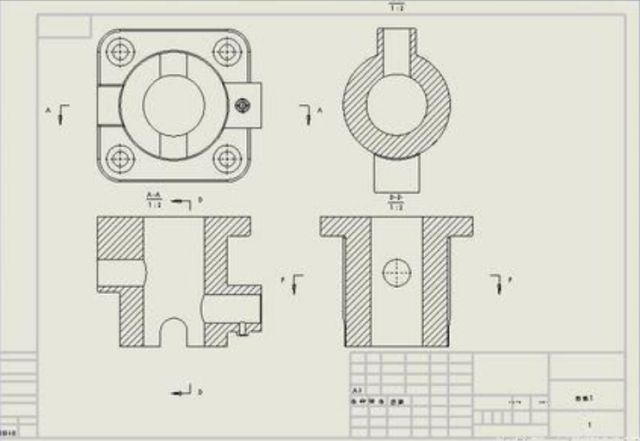 3. View planning: According to the product size and structural complexity, plan the distribution of views, especially the number and distribution of cross-sectional views, the location of technical requirements, and leave space for the title bar;